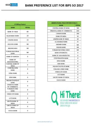 BANK PREFERENCE LIST FOR IBPS SO 2017